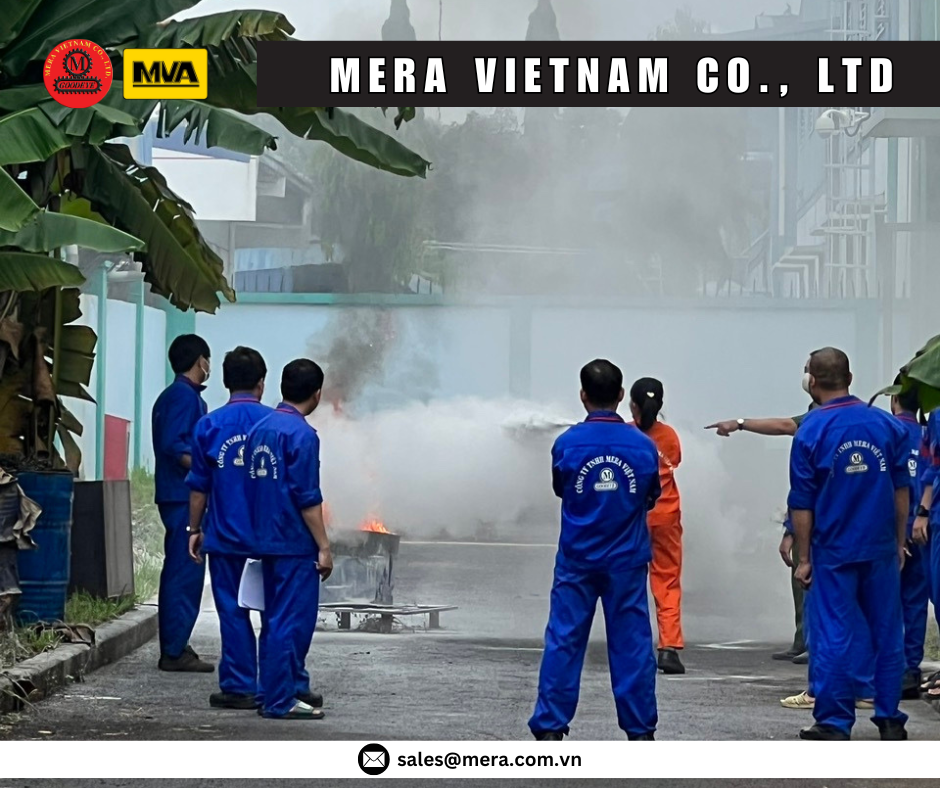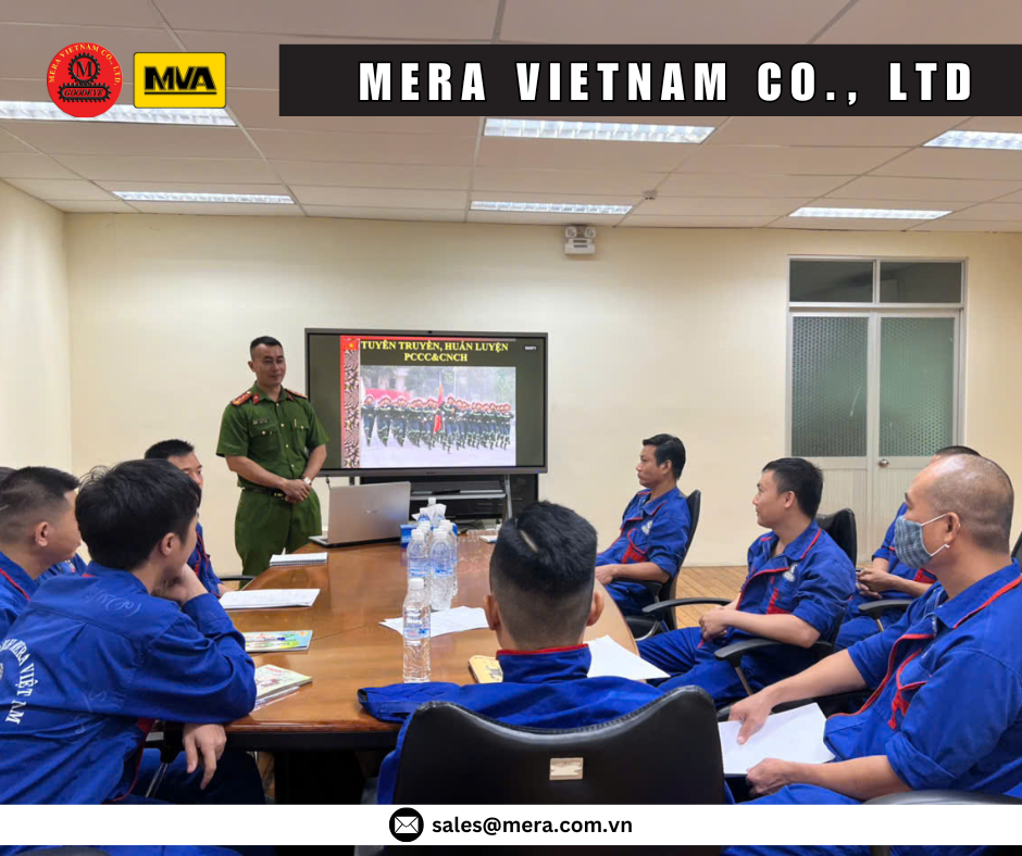 On May 29, 2025, Mera Vietnam Co., Ltd cooperated with the Fire Prevention and Rescue Police Department of Dong Nai Province to organize the company’s annual fire prevention and fighting training for all staff.